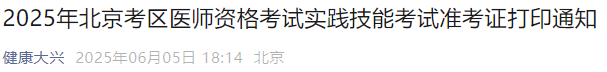 北京大興區(qū)2025年醫(yī)師資格實(shí)踐技能準(zhǔn)考證打印已開始!請(qǐng)相關(guān)考生及時(shí)查看官方通知要求,做好技能應(yīng)試準(zhǔn)備!