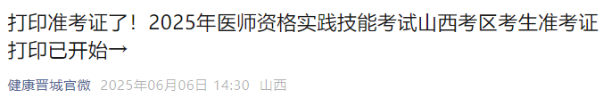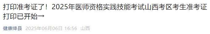 打印準考證了!2025年醫(yī)師資格實踐技能考試山西考區(qū)考生準考證打印已開始→