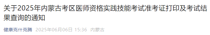 - · 內(nèi)蒙古包頭2025年醫(yī)師資格實(shí)踐技能準(zhǔn)考證打印6月7日開始
