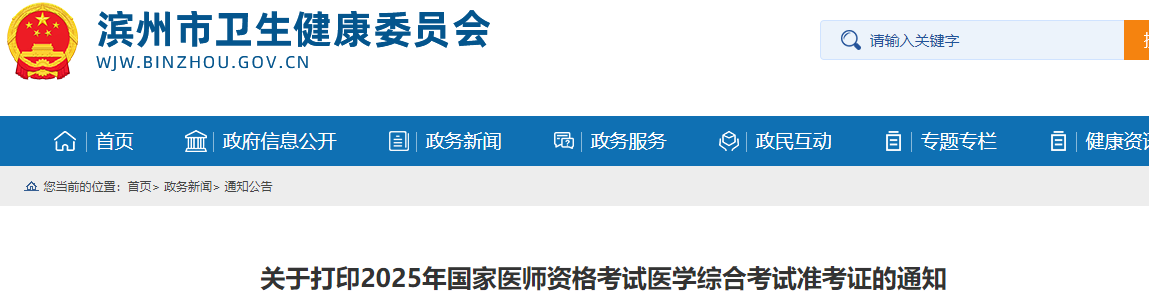 山東濱州2025年醫(yī)師資格綜合筆試準考證8月15日起可打印!