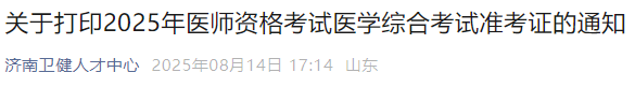 - · 山東濟南2025年醫(yī)師資格綜合筆試準考證8月15日起打?。?/a>