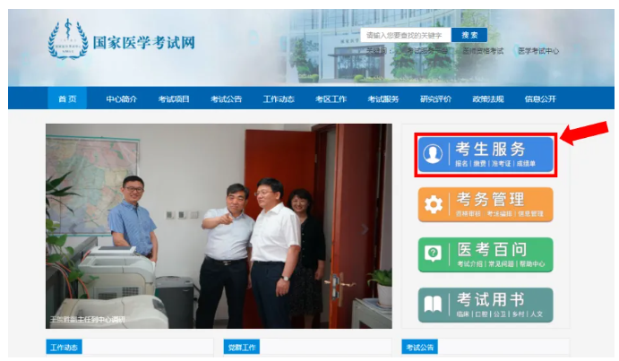 第一步:進(jìn)入國家醫(yī)學(xué)考試網(wǎng)點(diǎn)擊“考生服務(wù)”。