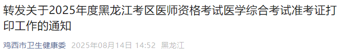 黑龍江雞西205年醫(yī)師資格考試醫(yī)學(xué)綜合考試準(zhǔn)考證打印已開始!