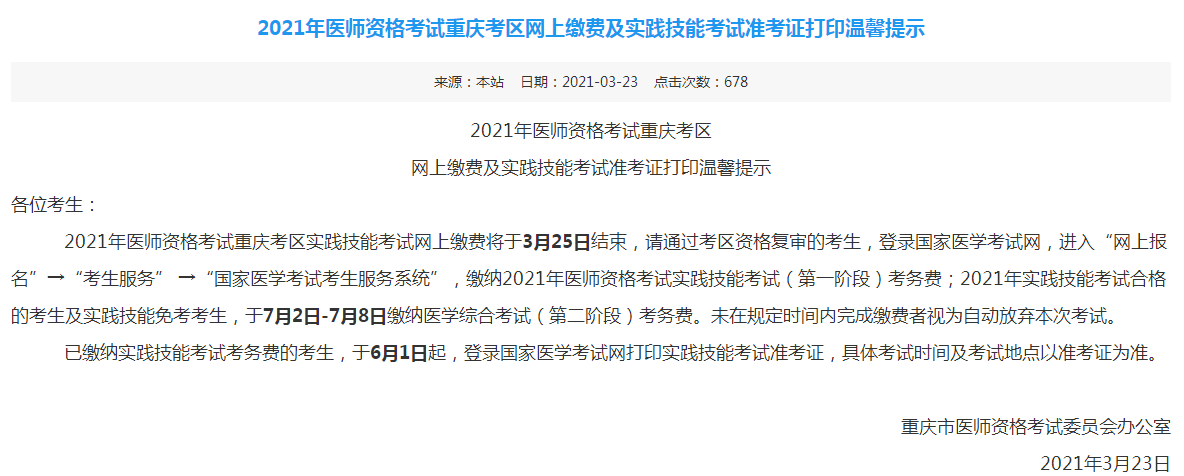 重慶考區(qū)2021年醫(yī)師實(shí)踐技能準(zhǔn)考證打印入口開通時(shí)間、打印流程