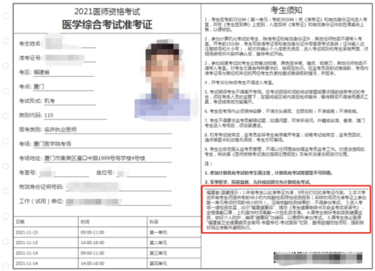 關(guān)于2021年全國(guó)醫(yī)師資格醫(yī)學(xué)綜合考試福建考區(qū)泉州考點(diǎn)考生準(zhǔn)考證打印的通知