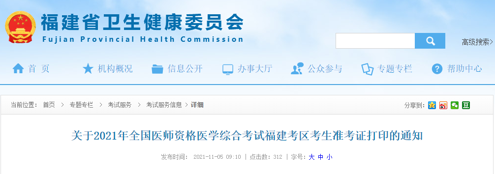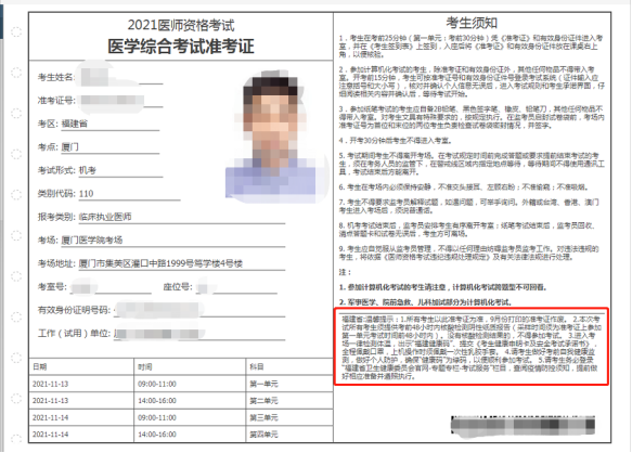 關(guān)于2021年全國(guó)醫(yī)師資格醫(yī)學(xué)綜合考試福建考區(qū)考生準(zhǔn)考證打印的通知