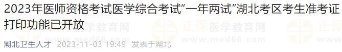 湖北考區(qū)2023年醫(yī)師資格綜合考試(二試)準(zhǔn)考證11月3日起開始打印