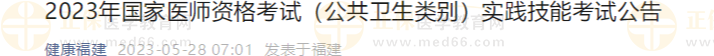 福建省2023年國(guó)家醫(yī)師資格考試(公共衛(wèi)生類別)實(shí)踐技能考試安排