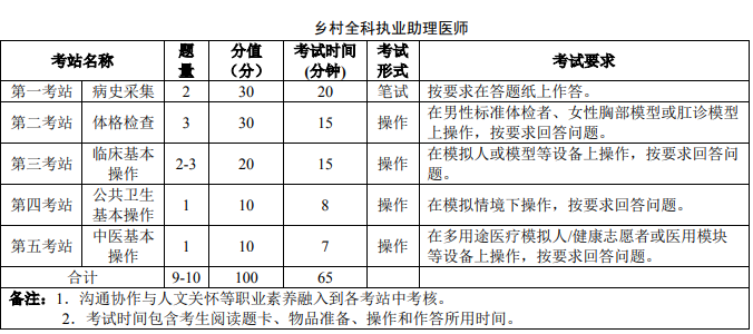 5、西醫(yī)類各站分數(shù)與考試時間: