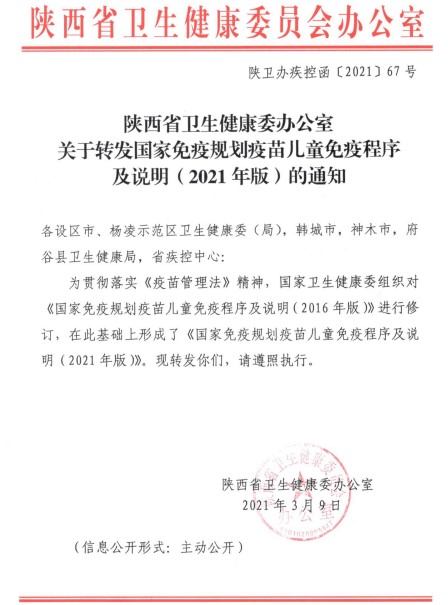 關(guān)于轉(zhuǎn)發(fā)國家免疫規(guī)劃疫苗兒童免疫程序及說明(2021年版)的通知