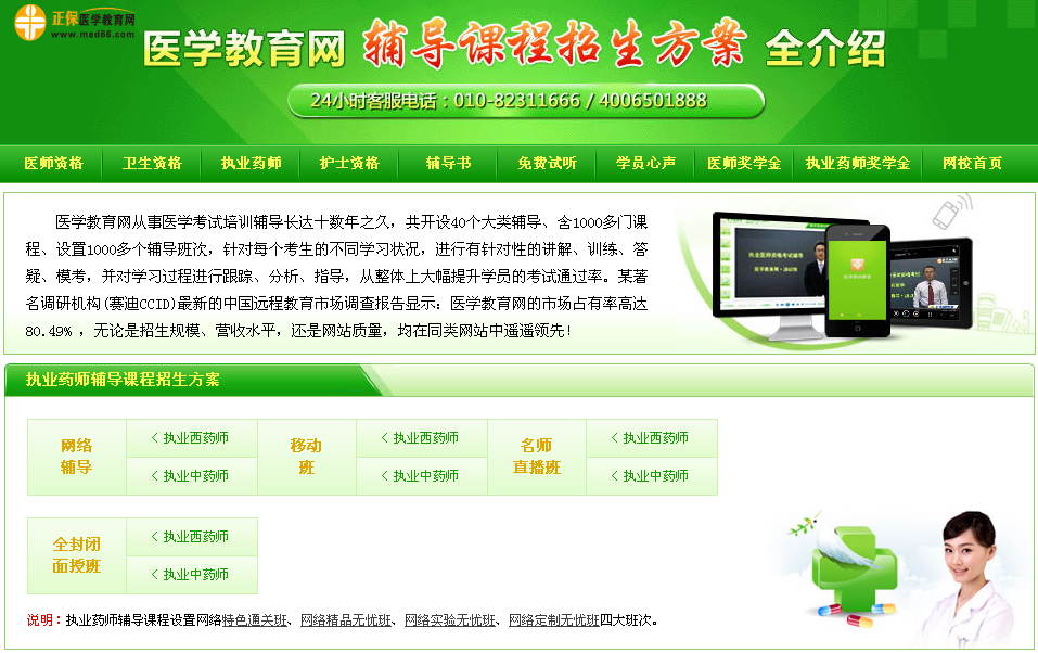 目前正保醫(yī)學(xué)教育網(wǎng)被百度收錄的各類醫(yī)學(xué)專業(yè)信息和考試信息近1000萬條,注冊學(xué)員300多萬人,日最高獨立IP訪問量可達117萬人,日最高峰值頁面流量達了2000多萬次,它是廣大考生了解醫(yī)學(xué)類考試政策、動態(tài)和參加培訓(xùn)的主要網(wǎng)站,在考生中有著強大的影響力和號召力。根據(jù)賽迪CCID調(diào)研機構(gòu)的中國遠程教育市場調(diào)查報告顯示:醫(yī)學(xué)教育網(wǎng)的市場占有率高達80.49%,無論是招生規(guī)模、營收水平,還是網(wǎng)站質(zhì)量,均在同類網(wǎng)站中遙遙領(lǐng)先!