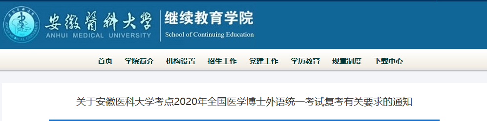 2020安徽醫(yī)科大學(xué)醫(yī)博外語統(tǒng)一考試復(fù)考通知