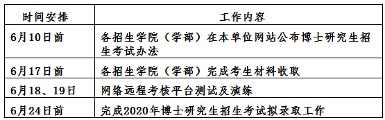 為確保廣大師生的身體健康,我校2020年所有博士招生專業(yè)均采用“材料審核評(píng)估+綜合能力考核”的考核方式,不再統(tǒng)一組織現(xiàn)場(chǎng)筆試。綜合能力考核采用網(wǎng)絡(luò)遠(yuǎn)程方式進(jìn)行。