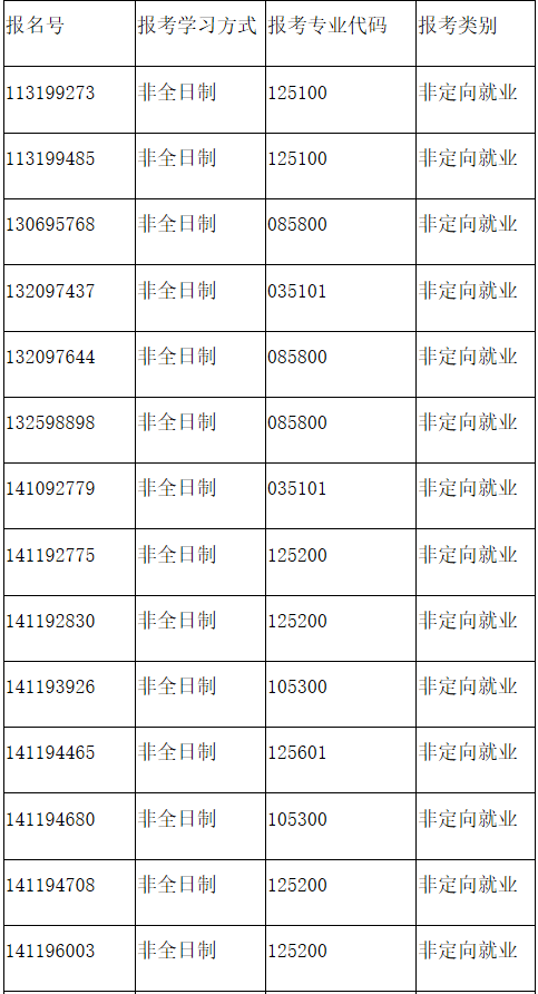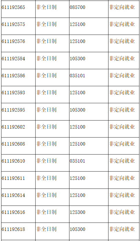 根據(jù)2021年西安交通大學(xué)招收碩士研究生招生章程規(guī)定,凡報(bào)考我校學(xué)習(xí)方式為非全日制的考生,報(bào)考類別必須選擇定向就業(yè)(報(bào)考類別碼應(yīng)為“12”),同時(shí)須填寫定向單位名稱,錄取后簽訂定向協(xié)議書。請以下所列考生在網(wǎng)報(bào)系統(tǒng)上盡快更正修改報(bào)考類別碼及填寫定向單位名稱。以免耽誤報(bào)考。