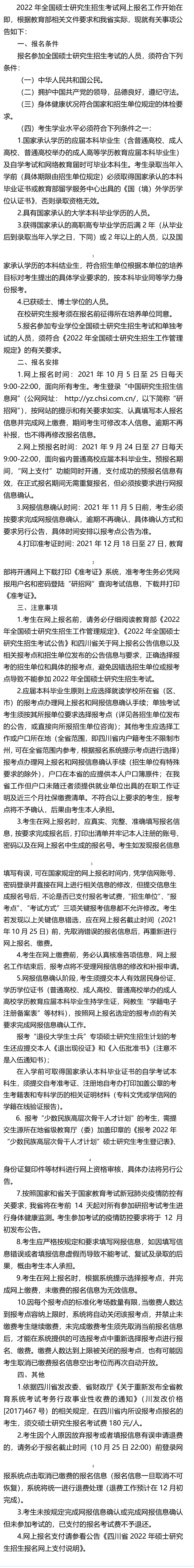 請(qǐng)各位想要考研的考生注意!四川2022年全國(guó)碩士研究生考試網(wǎng)上報(bào)名公告發(fā)布!為了讓大家了解具體內(nèi)容,小編整理官方通知,分享如下: