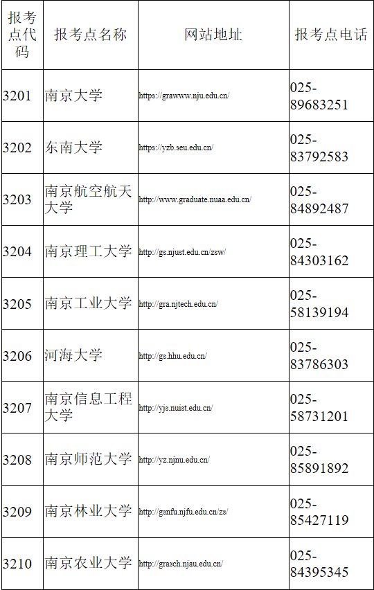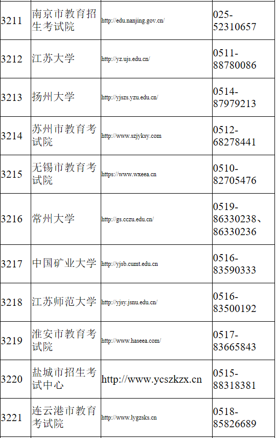 請考生認(rèn)真查閱各報(bào)考點(diǎn)網(wǎng)站相關(guān)內(nèi)容,如仍有疑問可向各報(bào)考點(diǎn)咨詢。2021年江蘇省碩士研究生招生考試報(bào)考點(diǎn)網(wǎng)址和咨詢電話如下表: