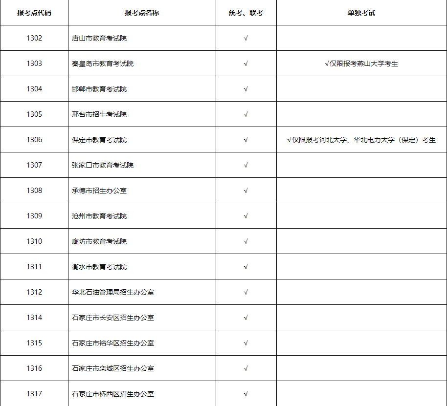 河北省2021年全國碩士研究生招生考試報(bào)考點(diǎn)設(shè)置及接收考試方式類型一覽表