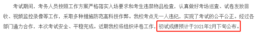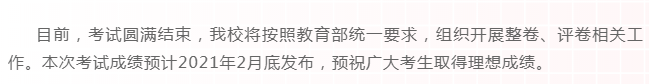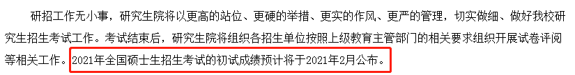 2021年全國(guó)碩士生招生考試的初試成績(jī)預(yù)計(jì)將與2021年2月公布。