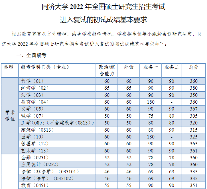 2022年考研的國家線已經(jīng)公布了!34所自主劃線的院校也已經(jīng)陸續(xù)公布分數(shù)!34自主劃線院校中的同濟大學已經(jīng)公布了2022年考研的復(fù)試分數(shù)線,為了幫助報考了同濟大學的考生了解,醫(yī)學教育網(wǎng)小編整理如下: