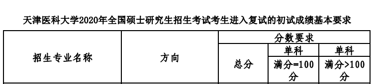 點擊下載: 天津醫(yī)科大學2020年全國碩士研究生招生考試考生進入復試的初試成績基本要求