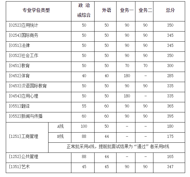 二、學校復試基本分數(shù)線(專業(yè)學位類)