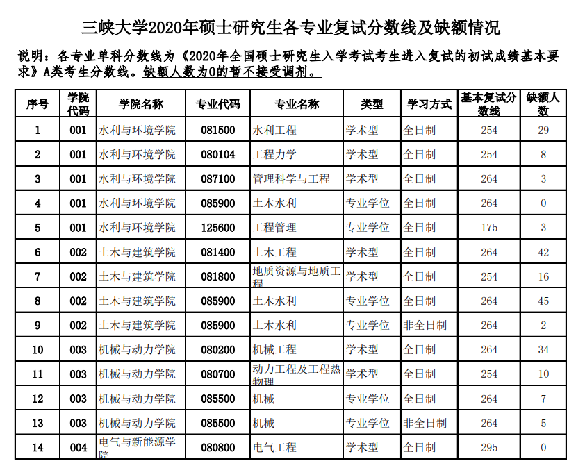 醫(yī)學(xué)教育網(wǎng)小編在三峽大學(xué)的研究生院官網(wǎng)上查閱到了“三峽大學(xué)2020年碩士研究生復(fù)試分?jǐn)?shù)線及缺額情況一覽”,其中涉及到了復(fù)試分?jǐn)?shù)線的內(nèi)容。為幫助各位想要報(bào)考三峽大學(xué)的考生了解,醫(yī)學(xué)教育網(wǎng)小編整理通知內(nèi)容如下: