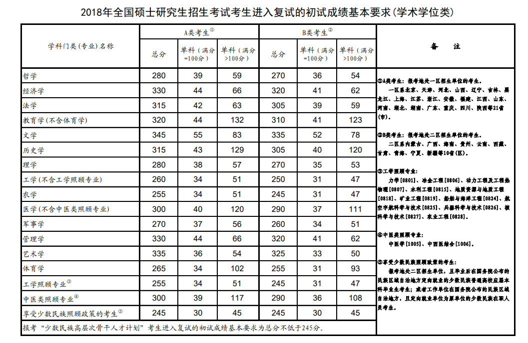 醫(yī)學(xué)教育網(wǎng)小編在國(guó)家教育部的官網(wǎng)上查閱到了“2018年全國(guó)碩士研究生招生考試考生進(jìn)入復(fù)試的初試成績(jī)基本要求”,其中涉及到了復(fù)試分?jǐn)?shù)線的內(nèi)容。為幫助各位考生了解,醫(yī)學(xué)教育網(wǎng)小編整理通知內(nèi)容如下: