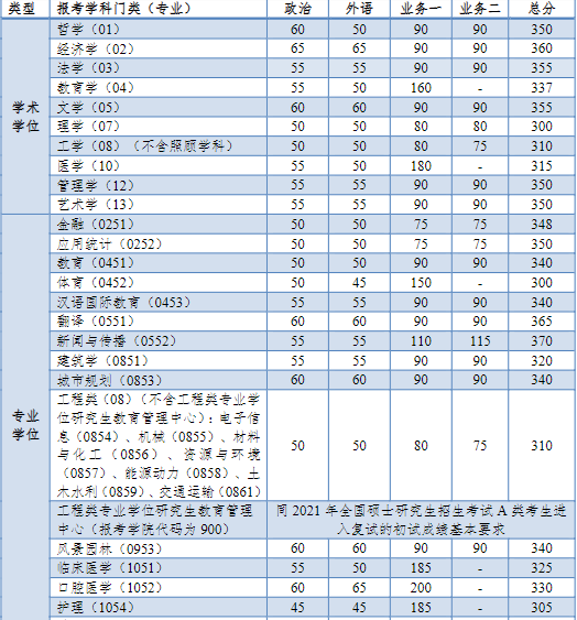 同濟(jì)大學(xué)2021年全國碩士研究生招生考試進(jìn)入復(fù)試的初試成績基本要求如下: