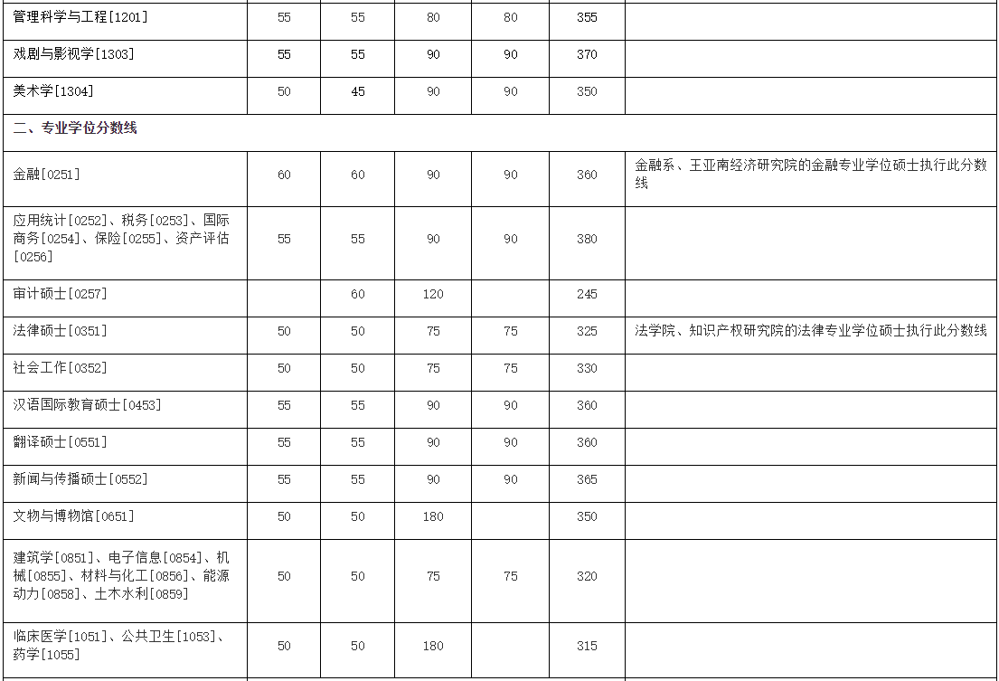 1.以下分數(shù)線為考生進入我校復(fù)試的初試成績基本要求,各學(xué)院(研究院)可在不低于學(xué)校復(fù)試基本要求的基礎(chǔ)上,根據(jù)生源和計劃情況確定本學(xué)院(研究院)各專業(yè)考生進入復(fù)試的初試成績要求。