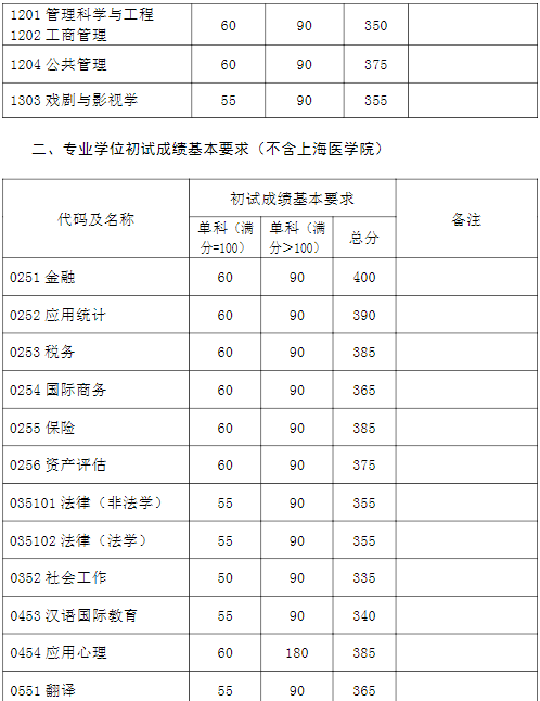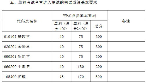 3.“退役大學(xué)生士兵計劃”:總分滿分等于500分的專業(yè),要求考生總分不低于所報考學(xué)科初試成績基本要求總分10分;總分滿分等于300分的專業(yè),要求考生總分不低于所報考學(xué)科初試成績基本要求總分5分。