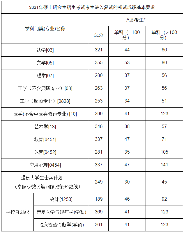 2021年我校擬招生1000人(含退役大學(xué)生士兵計(jì)劃7人),具體招生人數(shù)以國(guó)家下達(dá)招生計(jì)劃為準(zhǔn)。各招生學(xué)科復(fù)試分?jǐn)?shù)線不得低于國(guó)家復(fù)試合格線A類線,可以提高復(fù)試分?jǐn)?shù)線: