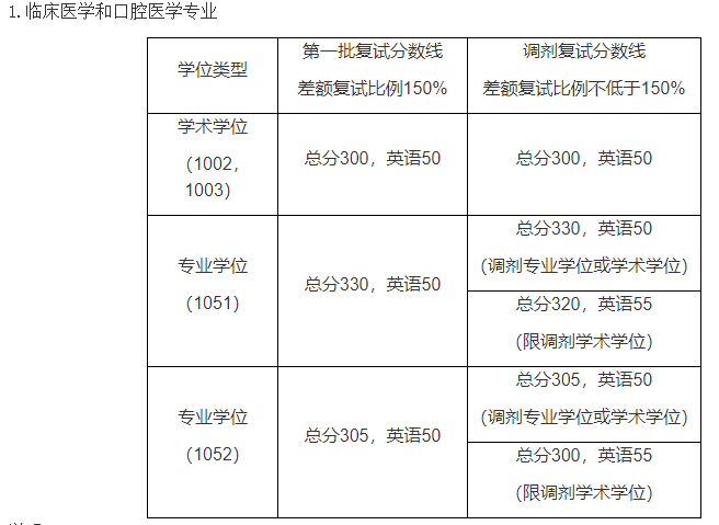 2.除臨床醫(yī)學和口腔醫(yī)學以外其他各專業(yè):執(zhí)行A類考生國家分數線復試和調劑。