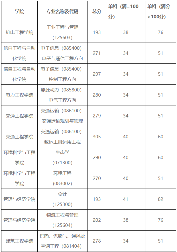 (2)B區(qū)國(guó)家線總分要求低于300分的學(xué)科門(mén)類和專業(yè)學(xué)位(不含管理管理類聯(lián)考):總分220分,單科(滿分=100分)30分,單科(滿分=150分)50分,單科(滿分=300分)100分。