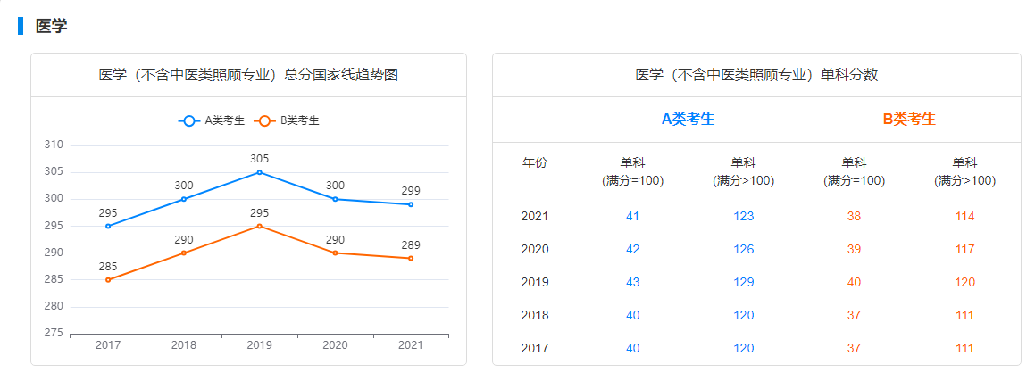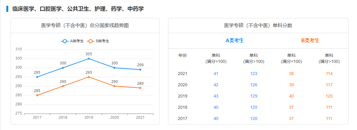 醫(yī)學(xué)專業(yè)近5年國家線趨勢圖-學(xué)術(shù)碩士