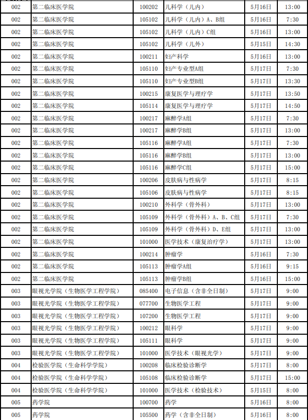 溫州醫(yī)科大學(xué)2020碩士研究生各專(zhuān)業(yè)參見(jiàn)復(fù)試時(shí)間安排