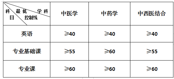 一、進(jìn)入復(fù)試考生各考試科目成績(jī)最低控制線見下表