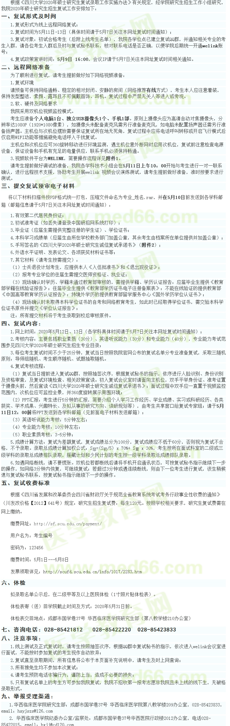 “四川大學2020年西醫(yī)臨床碩士研究生招生復試通知”相信是準備參加四川大學研究生復試的朋友比較關(guān)注的事情,為此,醫(yī)學教育網(wǎng)小編整理內(nèi)容如下: