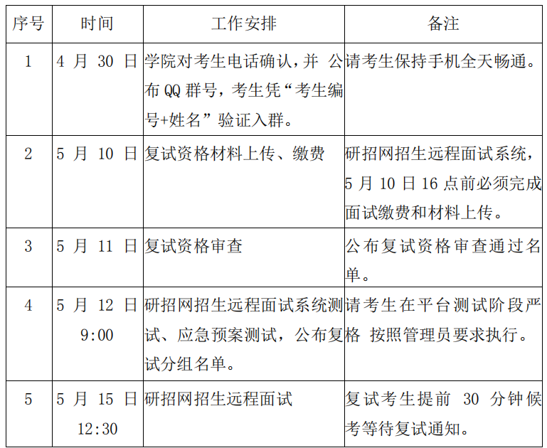 六、復試具體時間及地點5月15 日12:30,通過研招網招生遠程面試。