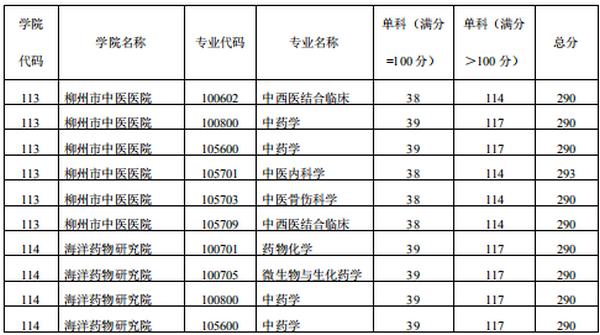 廣西中醫(yī)藥大學(xué)2020年碩士研究生第一志愿進(jìn)入復(fù)試的專業(yè)分?jǐn)?shù)線公告