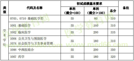 一、初試成績(jī)基本要求(醫(yī)學(xué)類)