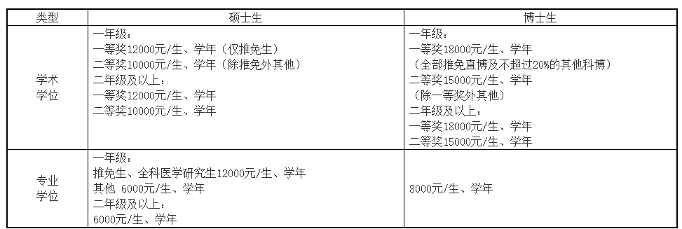 (1)國家助學金:碩士研究生每人500元/月,博士研究生每人1,250元/月。