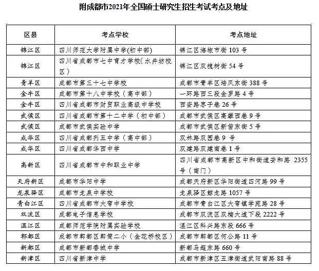 考前認(rèn)真閱讀四川省教育考試院官網(wǎng)(www.sceea.cn)上公布的《四川省2021年全國(guó)碩士研究生招生考試考生身體健康監(jiān)測(cè)公告》,按要求如實(shí)填報(bào)身體健康信息并準(zhǔn)備相關(guān)材料。鑒于當(dāng)前成都市新冠肺炎疫情防控形勢(shì),請(qǐng)考生配合做好疫情防控,保持良好心態(tài),持續(xù)關(guān)注四川省教育考試院、成都市教育考試院官網(wǎng)及官方微信公眾號(hào)發(fā)布的考試有關(guān)信息,并保持所留聯(lián)系手機(jī)通訊暢通。