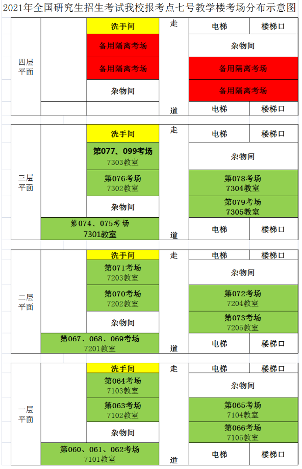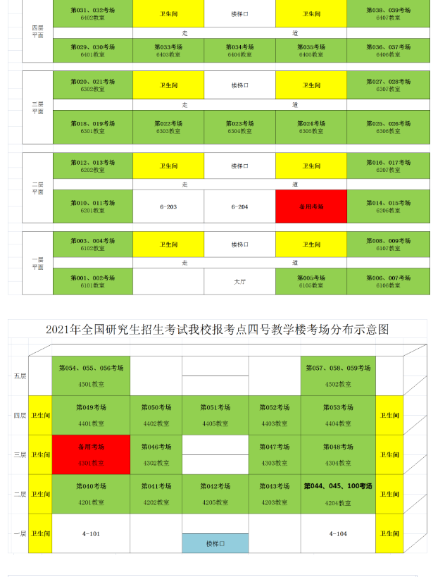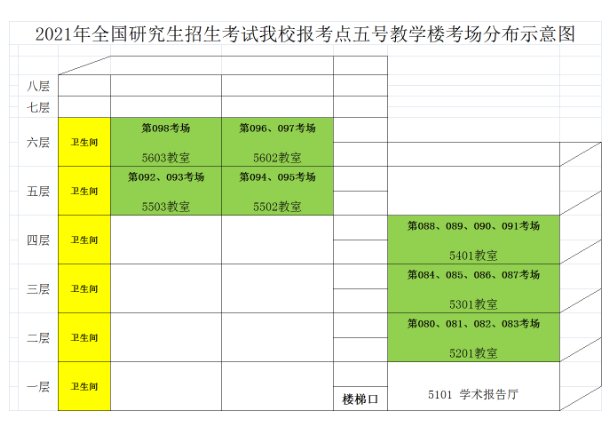 2021年全國研究生招生考試我校報(bào)考點(diǎn)六號(hào)教學(xué)樓考場分布示意圖