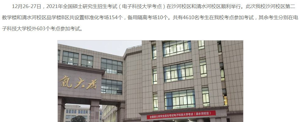 2021年碩士研究生招生考試已經(jīng)于2020年12月28日順利結(jié)束,電子科技大學(xué)研究生院發(fā)布了“學(xué)校順利完成2021年全國(guó)碩士研究生招生考試工作”,其中涉及了電子科技大學(xué)的2021年考研的報(bào)考人數(shù),為了幫助各位21年與22年考研的考生了解,醫(yī)學(xué)教育網(wǎng)小編整理新聞內(nèi)容如下!