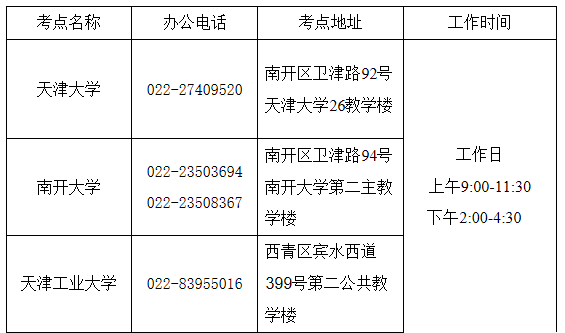 附件2:2021年天津市同等學力全國統(tǒng)考考點信息