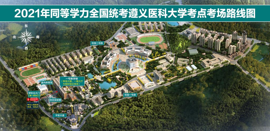 1.2021年同等學(xué)力全國統(tǒng)考遵義醫(yī)科大學(xué)考點(diǎn)的考場設(shè)在遵義醫(yī)科大學(xué)新蒲校區(qū)一號教學(xué)樓,請所有考生于開考前一天(5月22日16:00以后)到遵義醫(yī)科大學(xué)新蒲校區(qū)(同力統(tǒng)考考生從平安大道學(xué)校北大門進(jìn)出)熟悉考場位置、乘車路線等具體情況。