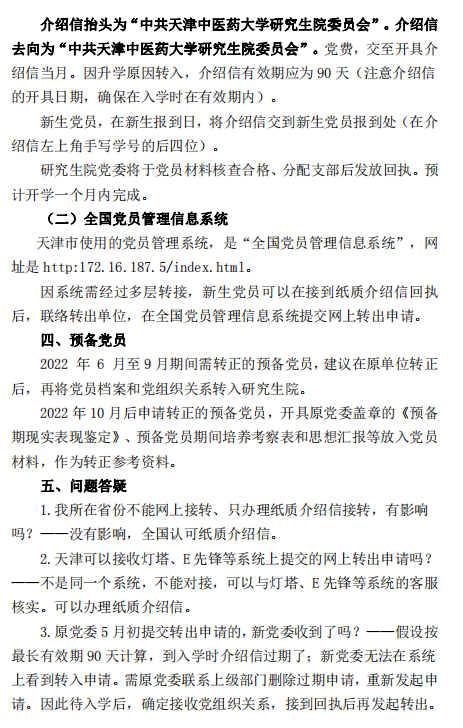 各位考研考友,請注意!天津中醫(yī)藥大學(xué)2022級黨員檔案及黨組織關(guān)系轉(zhuǎn)入通知發(fā)布!為讓大家了解具體內(nèi)容,醫(yī)學(xué)教育網(wǎng)小編整理官方通知,分享如下: