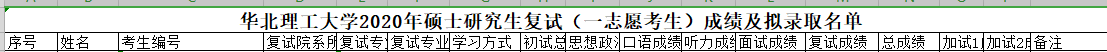 現(xiàn)將華北理工大學(xué)020碩士研究生一志愿考生復(fù)試成績及擬錄取名單公布,具體成績見附件,各位考生可以下載查詢。