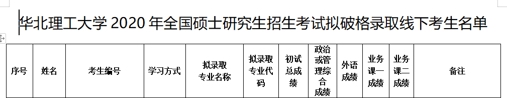 現(xiàn)將華北理工大學(xué)2020年全國(guó)碩士研究生招生考試擬破格錄取線下考生名單已經(jīng)公布,具體成績(jī)見(jiàn)附件,各位考生可以下載查詢。
