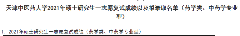 為幫助各位考生及時了解錄取結(jié)果,醫(yī)學(xué)教育網(wǎng)小編從天津中醫(yī)藥大學(xué)研究生院的官網(wǎng)上查找到了“天津中醫(yī)藥大學(xué)2021年碩士研究生一志愿復(fù)試成績以及擬錄取名單(藥學(xué)類、中藥學(xué)專業(yè)型)”通知內(nèi)容如下,請同學(xué)仔細(xì)查看!有問題請及時聯(lián)系學(xué)校!